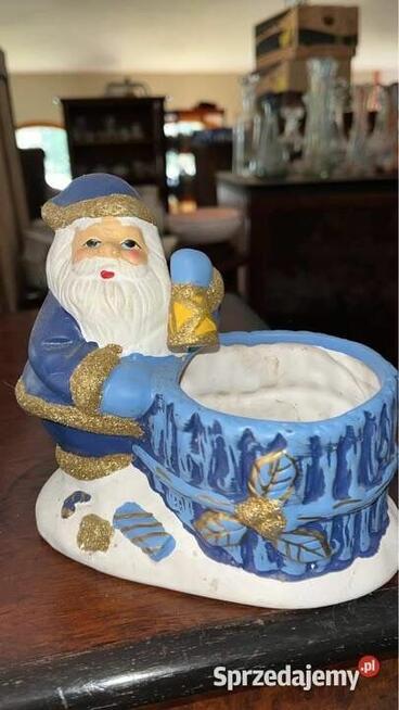 Figurka Mikołaja z dzwonkiem. Boże Narodzenie. Pojemnik na doniczkę, na słodycze, orzeszki.. Cena 45 zł. ...